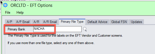 Select the primary EFT File Type on EFT Setup -> Options \ Primary File Type tab to match your bank file format.