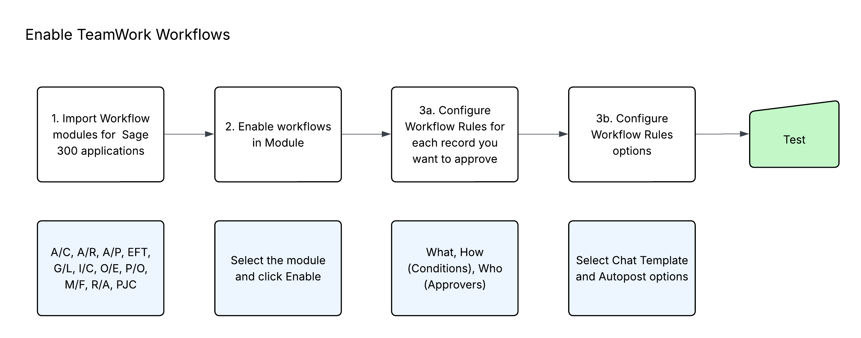 TeamWork includes workflow templates for many Sage 300 processes. You can import the modules and configure the relevant workflow rules and options.