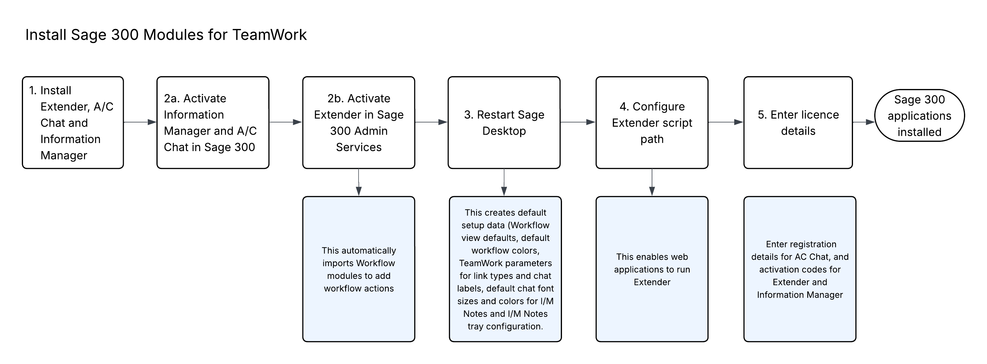You install and activate Sage 300 modules (AC Chat, Extender and Information Manager).