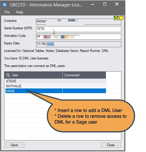 If users are not manually added to the I/M license screen, they will automatically be included in the license file as DML Users if they were flagged as such in the System Tray (from the previous DML release) the first time they log in to Sage 300.