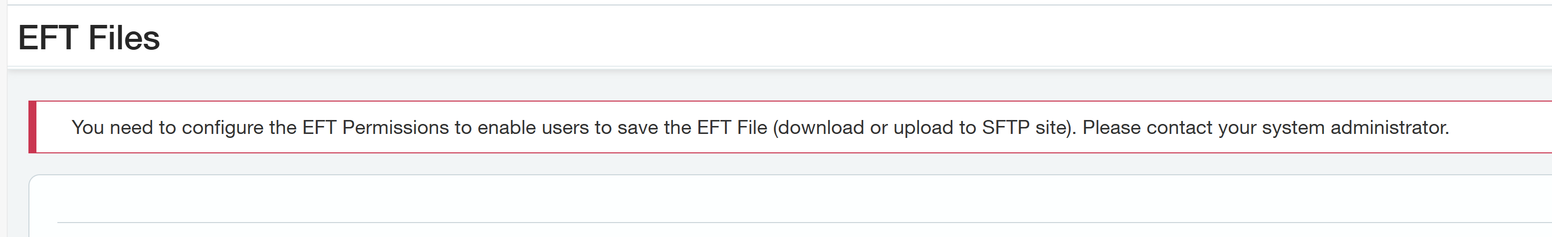 If no users have permissions to download/upload, files cannot be downloaded / uploaded on the EFT File list. All users will view an information message, prompting an Administrator to configure the EFT Permissions.