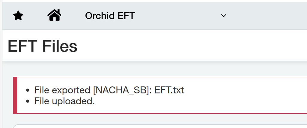 Upload creates the EFT File as per the file format configured on the EFT bank and uploads the file to the SFTP server with the details entered in EFT banks. If the EFT bank is configured to Download in , the Upload button is not available. See Download above. Only active if status is New, Exported or Confirmed. For details, refer to:Upload EFT files to SFTP